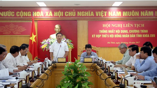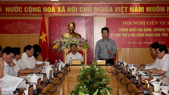 Các đồng chí Lê Đình Sơn, Ủy viên BCH Trung ương Đảng, Bí thư Tỉnh ủy, Chủ tịch HĐND tỉnh; Đặng Quốc Khánh, Ủy viên Dự khuyết BCH Trung ương Đảng, Phó Bí thư Tỉnh ủy, Chủ tịch UBND, Trưởng Đoàn ĐBQH tỉnh chủ trì hội nghị.