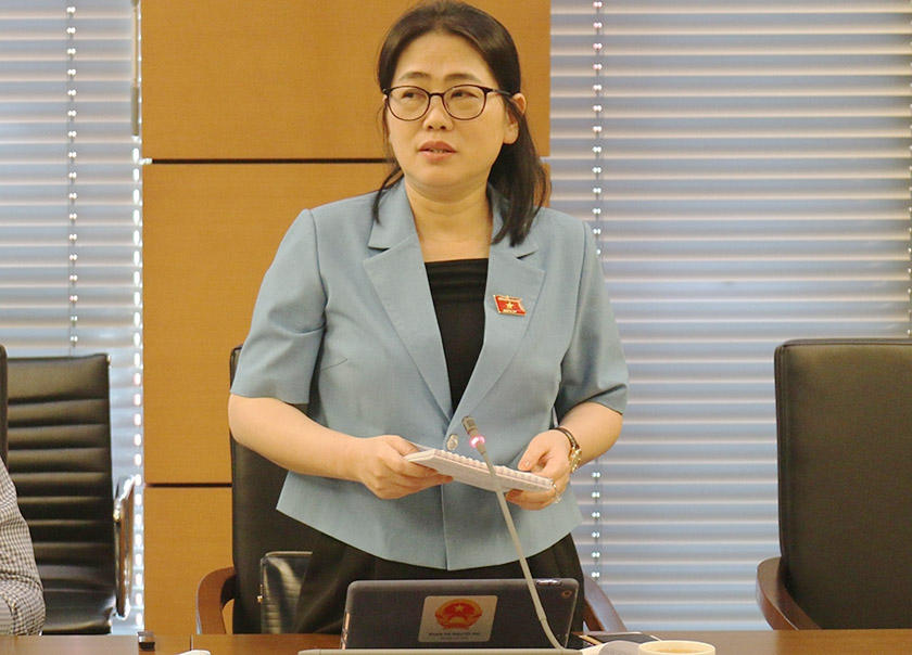 | ĐBQH tỉnh Hà Tĩnh - Phan Thị Nguyệt Thu thảo luận tại Tổ về dự án Luật Đất đai (sửa đổi). |