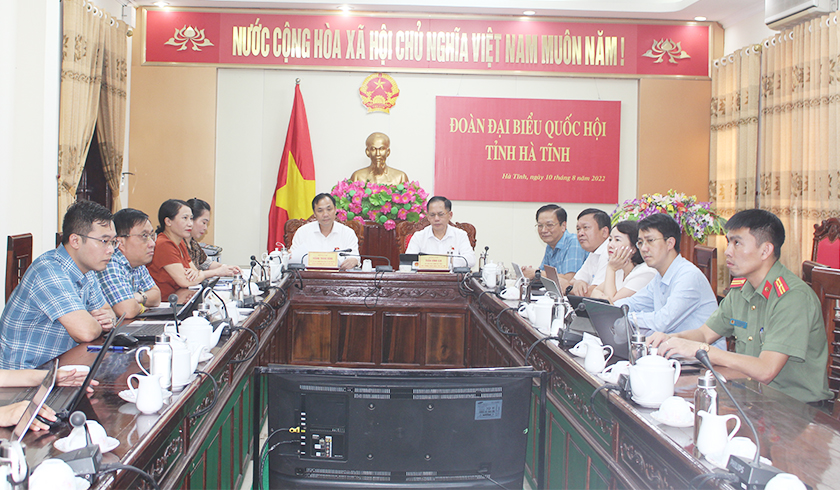 | Tại điểm cầu Hà Tĩnh có đồng chí: Hoàng Trung Dũng - Bí thư Tỉnh ủy, Trưởng đoàn ĐBQH tỉnh và Trần Đình Gia - Phó Trưởng đoàn chuyên trách Đoàn ĐBQH tỉnh |