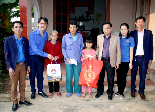 | Phó Trưởng đoàn ĐBQH tỉnh Nguyễn Văn Sơn, BCH Chi đoàn tặng quà cho các đối tượng chính sách, hộ khó khăn tại xã Yên Lộc |