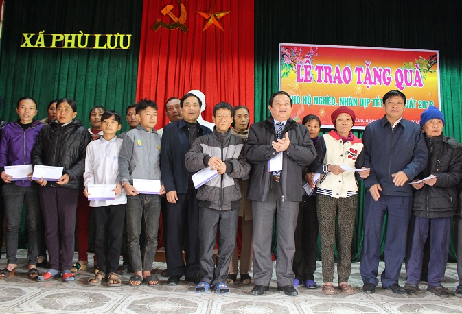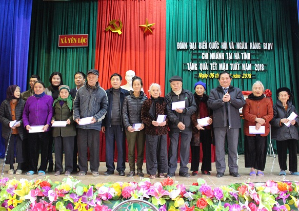 Chiều ngày 6/2, Phó trưởng đoàn ĐBQH tỉnh Nguyễn Văn Sơn và lãnh đạo Ngân hàng BIDV chi nhánh Hà Tĩnh đã đến chúc tết và tặng quà cho 300 trị giá 150 triệu đồng cho các hộ dân có hoàn cảnh khó khăn, gia đình chính sách tại xã Phù Lưu, Hồng Lộc, Yên Lộc tại huyện Lộc Hà và Can Lộc.