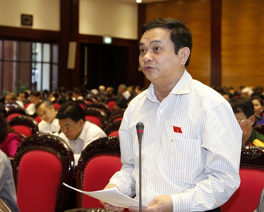 | Đại biểu Nguyễn Văn Sơn phát biểu tại hội trường |