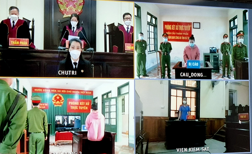 Sáng 5/4, Tòa án nhân dân tỉnh Hà Tĩnh tổ chức phiên tòa trực tuyến xét xử phúc thẩm vụ án hình sự đối với bị cáo Nguyễn Thị Việt (SN 1984), trú phường Trần Phú, thành phố Hà Tĩnh về tội “Mua bán trái phép chất ma túy”. Bà Phan Thị Nguyệt Thu, Thẩm phán, Chánh án TAND tỉnh chủ tọa phiên tòa. Phiên tòa được tổ chức tại 2 điểm cầu: Tại Hội trường xét xử TAND tỉnh và điểm cầu tại phòng xét xử trực tuyến Trại tạm giam Cầu Đông, Công an tỉnh.
