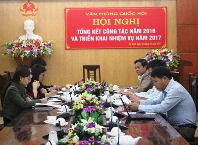 Phát biểu chỉ đạo tại Hội nghị Chủ tịch Quốc hội Nguyễn Thị Kim Ngân biểu dương, đánh giá cao những thành tích mà Văn phòng đã đạt được trong thời gian qua, tuy vẫn còn nhiều khó khăn nhưng với truyền thống và sự nổ lực của mỗi cán bộ công chức, viên chức, người lao động nên Văn phòng đạt được nhiều thành tích đáng ghi nhận. Năm 2017 Quốc hội tiếp tục triển khai số lượng công việc lớn về lập pháp, giám sát tối cao, xem xét các vấn đề phát triển đất nước đòi hỏi trách nhiệm, vai trò của Văn phòng Quốc, mỗi cán bộ, công chức, viên chức cần nâng cao trách nhiệm trong công tác chuyên môn; tiếp tục tham mưu phục vụ tổ chức tốt kỳ họp thứ 3,4 của Quốc hội và các kỳ họp của Ủy ban Thường vụ Quốc hội; đổi mới nâng cao công tác thông tin, tuyên truyền, ứng dụng mạnh mẽ CNTT vào công tác chỉ đạo, điều hành; thực hiện tốt công tác phối hợp với các cơ quan hữu quan; đảm bảo thực hiện tốt công tác cán bộ, thi đua khen thưởng, tinh gọn bộ máy Văn phòng, quan tâm đời sống vật chất, tinh thần cho người lao động. Bên cạnh đó đồng chí đề nghị Văn phòng Quốc hội tiếp thu nghiêm túc các ý kiến kiến nghị, đề xuất của Đoàn ĐBQH các địa phương để nghiên cứu xem xét, giải quyết trong thời gian sớm nhất.