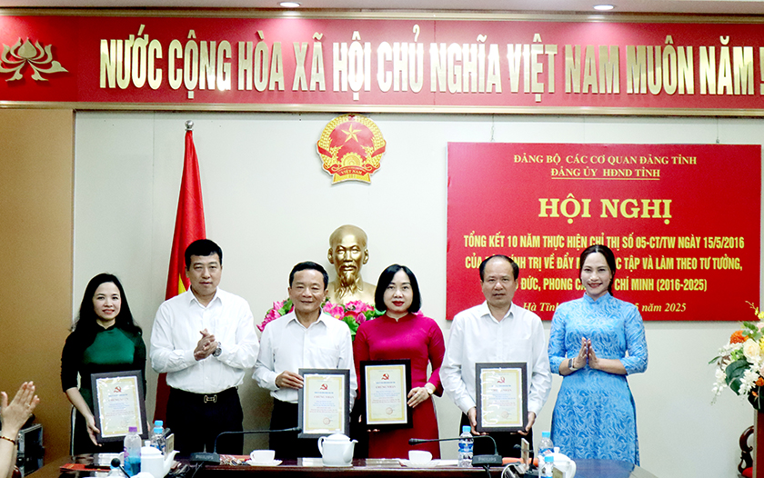 Các đồng chí lãnh đạo tỉnh, HĐND tỉnh biểu dương, vinh danh các cá nhân có thành tích xuất sắc trong học tập và làm theo tư tưởng, đạo đức, phong cách Hồ Chí Minh giai đoạn 2016-2025.