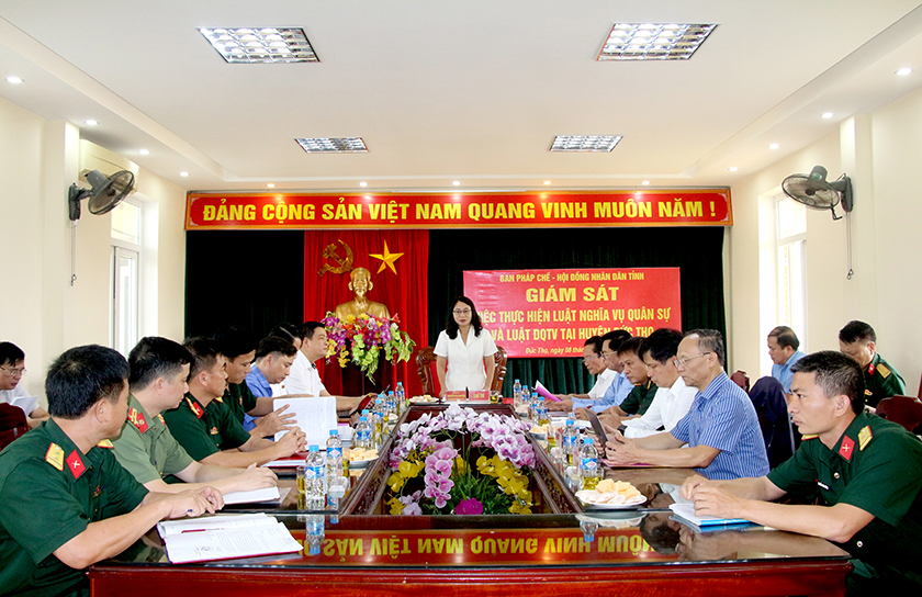 Ban Pháp chế HĐND tỉnh giám sát việc thực hiện Luật Nghĩa vụ quân sự, Luật Dân quân tự vệ tại huyện Đức Thọ.