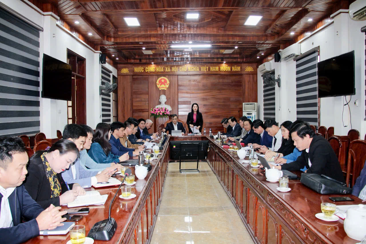 Phó Chủ tịch Hội đồng nhân dân tỉnh Nguyễn Thị Việt Hà phát biểu tại cuộc thảo luận. |