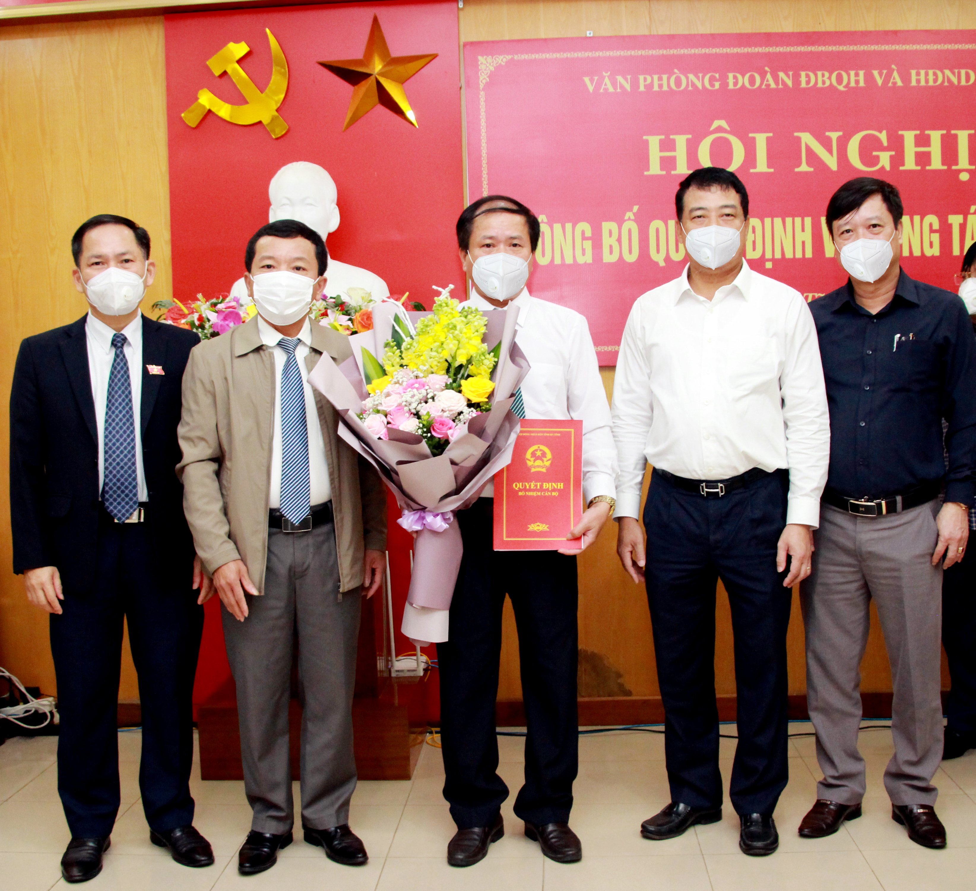 Sáng 26/10/2021, Văn phòng Đoàn ĐBQH, HĐND tỉnh đã tổ chức Lễ công bố Quyết định bổ nhiệm cán bộ. Tham dự có đồng chí Trần Tú Anh, Ủy viên Ban Thường vụ Tỉnh ủy, Phó Chủ tịch Thường trực HĐND tỉnh, đồng chí Trần Đình Gia, Tỉnh ủy viên, Phó trưởng Đoàn chuyên trách Đoàn ĐBQH tỉnh, đồng chí Trần Văn Kỳ, Tỉnh ủy, Phó Chủ tịch HĐND tỉnh, đồng chí Nguyễn Minh Đức, Tỉnh uy viên, Phó trưởng Ban Thường trực, Ban Tổ chức Tỉnh ủy