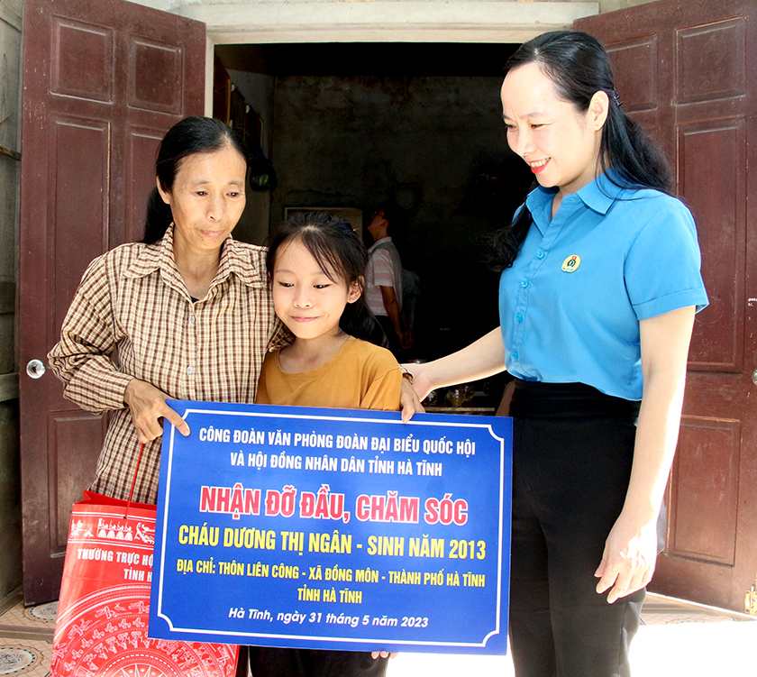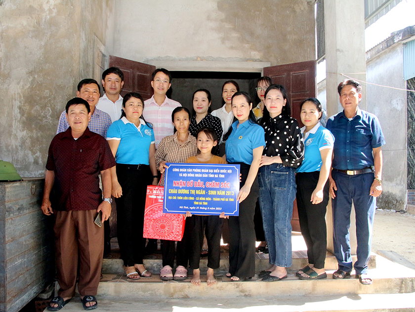 Công đoàn Văn phòng Đoàn ĐBQH và HĐND tỉnh nhận chăm sóc, đỡ đầu cháu Dương Thị Ngân, thôn Liên Công xã Đồng Môn, thành phố Hà Tĩnh.