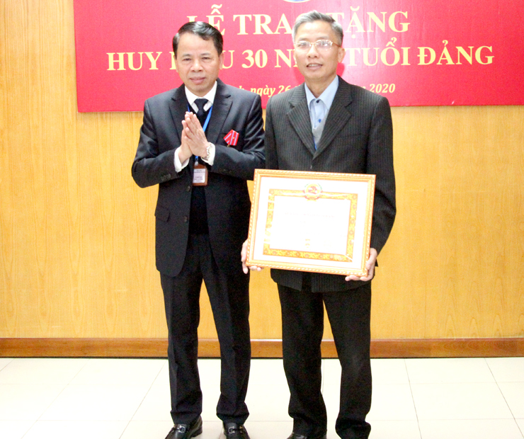 Cũng tại Hội nghị, Bí thư Đảng bộ, Chánh Văn phòng Đoàn ĐBQH, HĐND, UBND tỉnh Lê Minh Đạo đã trao tặng Huy hiệu 30 năm tuổi đảng cho đồng chí Đặng Xuân Huề - Bí thư chi bộ Phòng Quản trị tài vụ