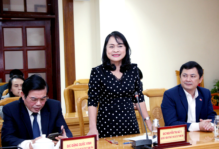 Đồng chí Nguyễn Thị Nữ Y - Nguyên Ủy viên BTV Tỉnh ủy, nguyên Phó Chủ tịch Thường trực HĐND tỉnh phát biểu tại Hội nghị