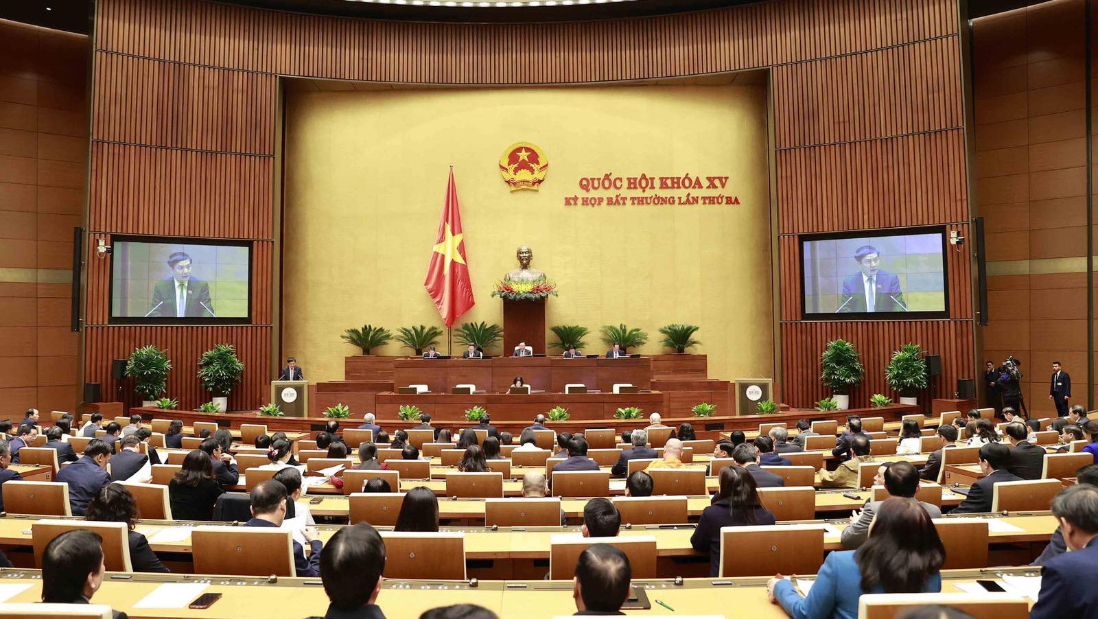 Chiều ngày 18/01/2023, Kỳ họp bất thường lần thứ 3, Quốc hội khóa XV đã diễn ra tại Nhà Quốc hội, Thủ đô Hà Nội dưới sự chủ trì của Chủ tịch Quốc hội Vương Đình Huệ