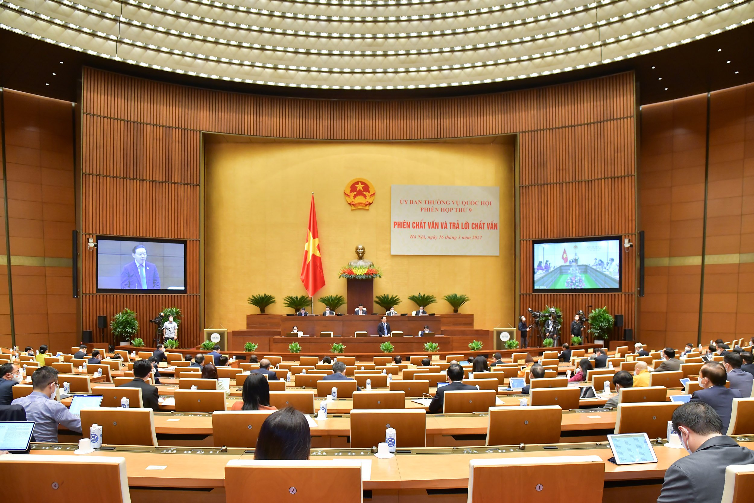 Sáng 16-3, tại phiên họp thứ 9, dưới sự chủ tọa của Chủ tịch Quốc hội Vương Đình Huệ, Ủy ban Thường vụ Quốc hội bắt đầu nội dung làm việc quan trọng tổ chức hoạt động chất vấn và trả lời chất vấn về hai nhóm vấn đề thuộc lĩnh vực công thương, tài nguyên và môi trường