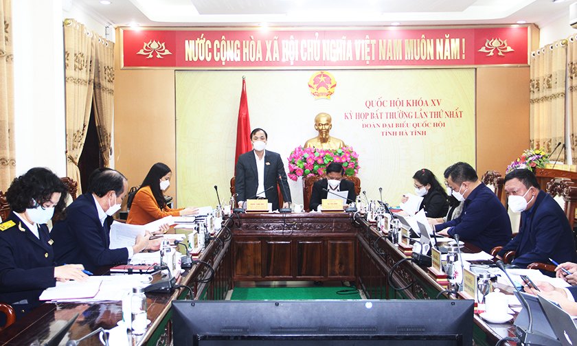 Tiếp tục chương trình làm việc, chiều 4/1/2022, Quốc hội đã tiến hành thảo luận tại Tổ về chính sách tài khóa, tiền tệ để hỗ trợ Chương trình phục hồi và phát triển kinh tế - xã hội. Đồng chí Hoàng Trung Dũng, Ủy viên Ban Chấp hành Trung ương Đảng, Bí thư Tỉnh ủy, Chủ tịch HĐND tỉnh, Trưởng đoàn ĐBQH tỉnh chủ trì phiên thảo luận Tổ đại biểu Quốc hội Hà Tĩnh.