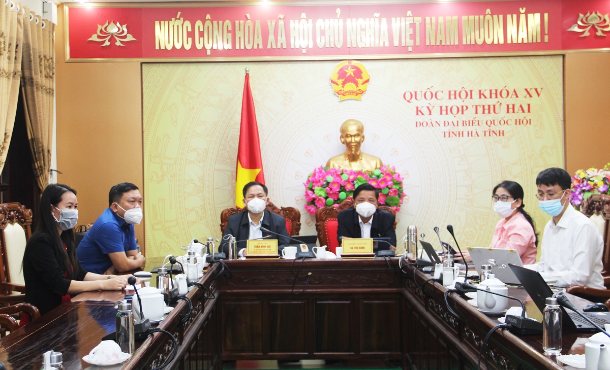 Tại điểm cầu tỉnh Hà Tĩnh, Phó Trưởng đoàn chuyên trách Đoàn ĐBQH tỉnh Trần Đình Gia chủ trì, điều hành cùng dự có Đại biểu Quốc hội, Thiếu tướng Hà Thọ Bình, Phó Tư lệnh, Tham mưu trưởng Bộ Tư lệnh Quân khu IV; Đại biểu Quốc hội Phan Thị Nguyệt Thu, Tỉnh ủy viên, Chánh án Tòa án nhân dân tỉnh; lãnh đạo Văn phòng Đoàn ĐBQH và HĐND tỉnh.
