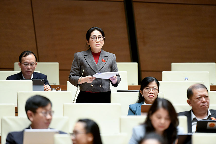 Đại biểu Phan Thị Nguyệt Thu - Đoàn đại biểu Quốc hội Hà Tĩnh, Chánh án TAND tỉnh phát biểu