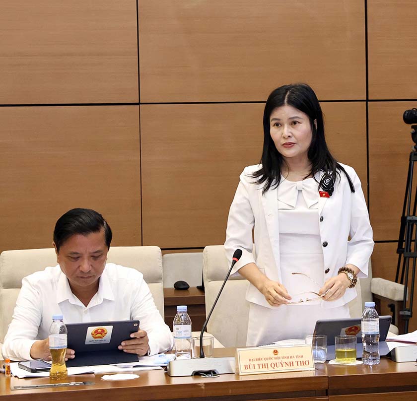 ĐBQH Bùi Thị Quỳnh Thơ tham gia góp ý về các vấn đề liên quan đến kinh tế xã hội, ngân sách nhà nước, cơ cấu lại nền kinh tế. Đại biểu đề nghị Báo cáo của Chính phủ cần làm rõ hơn về khó khăn đối với thị trường trái phiếu, nhiều doanh nghiệp giải thể, hoạt động kém, thị trường hàng hóa sức mua yếu, các kết quả không hoặc chưa đạt được như cơ cấu lại doanh nghiệp nhà nước, đơn vị sự nghiệp công lập..., từ đó đề xuất các giải pháp phù hợp, giải pháp mạnh mẽ trong việc quản lý việc giao dịch qua các nền tảng số, tránh tình trạng gian lận thương mại ngày càng gia tăng.