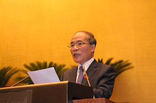 Đây là kỳ họp đầu tiên được tổ chức tại Nhà Quốc hội - Hội trường Ba Đình mới. Thay mặt Ủy ban thường vụ Quốc hội, tôi trân trọng cảm ơn Ban chấp hành Trung ương Đảng, Quốc hội, đồng bào và cử tri cả nước đã chấp thuận và tạo mọi điều kiện cần thiết để xây dựng Nhà Quốc Hội; cảm ơn sự nỗ lực, cố gắng của Chính phủ, Thủ tướng Chính phủ, Bộ Xây dựng, các bộ, ngành hữu quan và Thành phố Hà Nội; cảm ơn Ban quản lý dự án, các Nhà thầu và toàn thể cán bộ, công nhân, người lao động đã làm việc miệt mài ngày đêm kịp đưa công trình vào phục vụ kỳ họp thứ 8. Tôi cũng xin thay mặt Quốc hội chân thành cảm ơn Lãnh đạo Bộ Quốc phòng, cán bộ, chiến sĩ, công nhân viên cơ quan Bộ Quốc phòng đã dành các điều kiện tốt nhất để tổ chức thành công 15 kỳ họp Quốc hội tại Hội trường Bộ Quốc phòng trong hai nhiệm kỳ vừa qua.