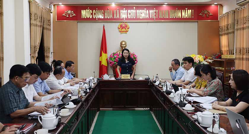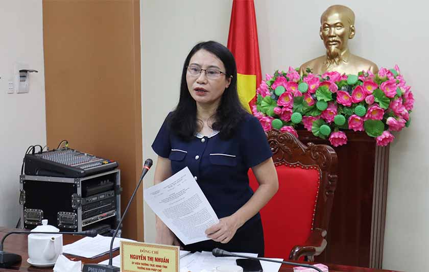 | Trưởng ban Pháp chế HĐND tỉnh Nguyễn Thị Nhuần kết luccnj tại cuộc làm việc |