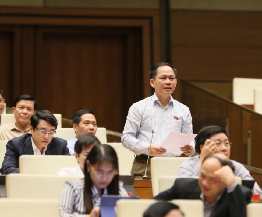 | Đại biểu Trần Đình Gia phát biểu tại Hội trường |