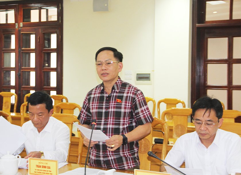 | Phó Trưởng đoàn phụ trách Đoàn ĐBQH tỉnh Trần Đình Gia báo cáo tình hình và kết quả hoạt động của Đoàn ĐBQH tỉnh |