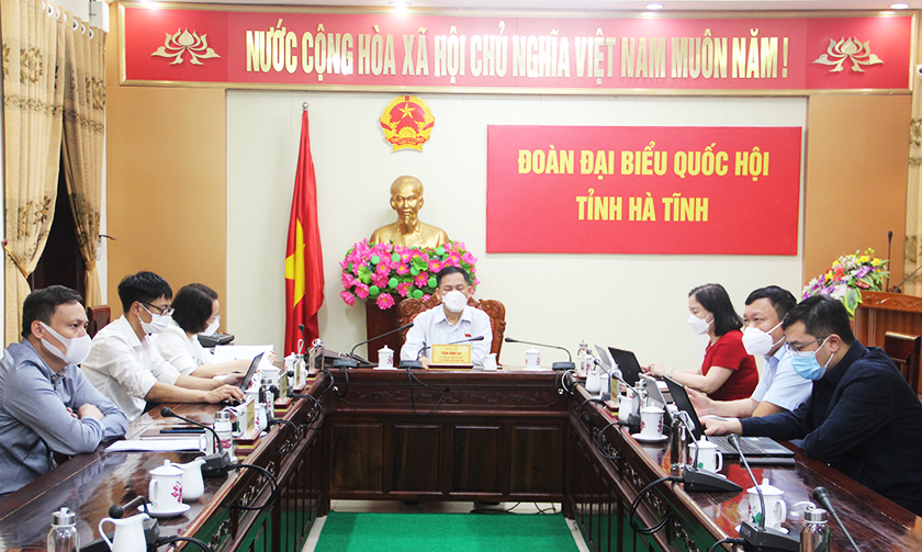 | Tại điểm cầu Hà Tĩnh , Phó trưởng Đoàn chuyên trách Đoàn ĐBQH tỉnh Trần Đình Gia điều hành . |