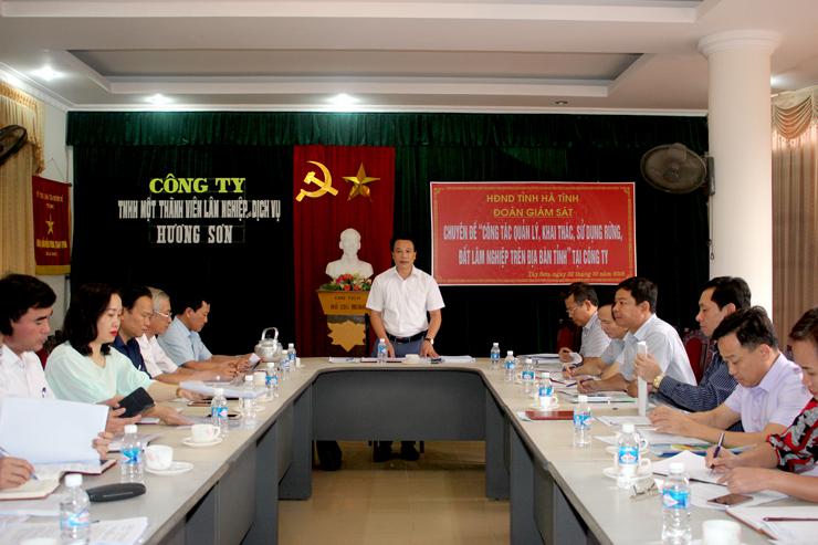 Tiếp tục chương trình giám sát chuyên đề của Hội đồng nhân dân (HĐND) tỉnh về “Công tác quản lý, khai thác, sử dụng rừng, đất lâm nghiệp trên địa bàn tỉnh”; sáng 23/10/2019, Đoàn giám sát đã làm việc với Công ty TNHH MTV Lâm nghiệp và dịch vụ Hương Sơn.
