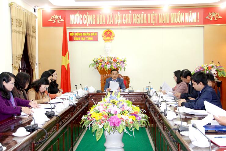 Tiếp tục chương trình giám sát chuyên đề của Hội đồng nhân dân (HĐND) tỉnh về “Công tác quản lý, khai thác, sử dụng rừng, đất lâm nghiệp trên địa bàn tỉnh”, chiều 28/10/2019, Đoàn giám sát đã làm việc với UBND huyện Vũ Quang. Phó Chủ tịch Thường Trực HĐND tỉnh Nguyễn Thị Nữ Y, Trưởng Ban Pháp chế HĐND tỉnh Nguyễn Huy Hùng chủ trì buổi làm việc.