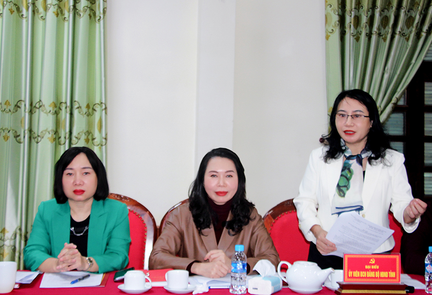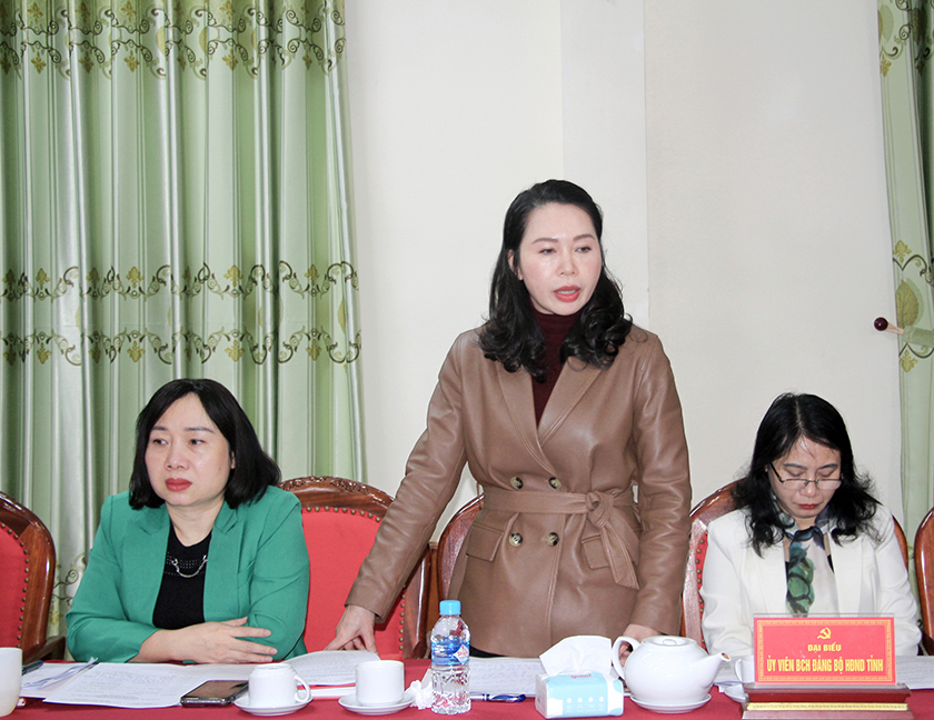 Đồng chí Nguyễn Thị Việt Hà, Ủy viên Ban Chấp hành Đảng bộ tỉnh, Phó Chủ tịch Hội đồng nhân dân tỉnh: cần xây dựng các nhân tố điển hình trong thực hiện nhiệm vụ. |