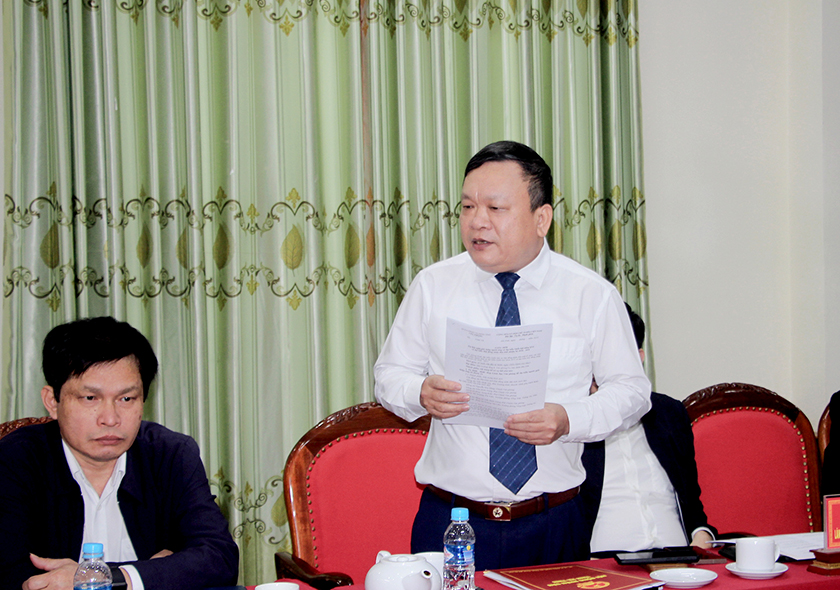 Đồng chí Nguyễn Huy Hùng, Chánh Văn phòng Đoàn ĐBQH và HĐND tỉnh báo cáo tại hội nghị. |