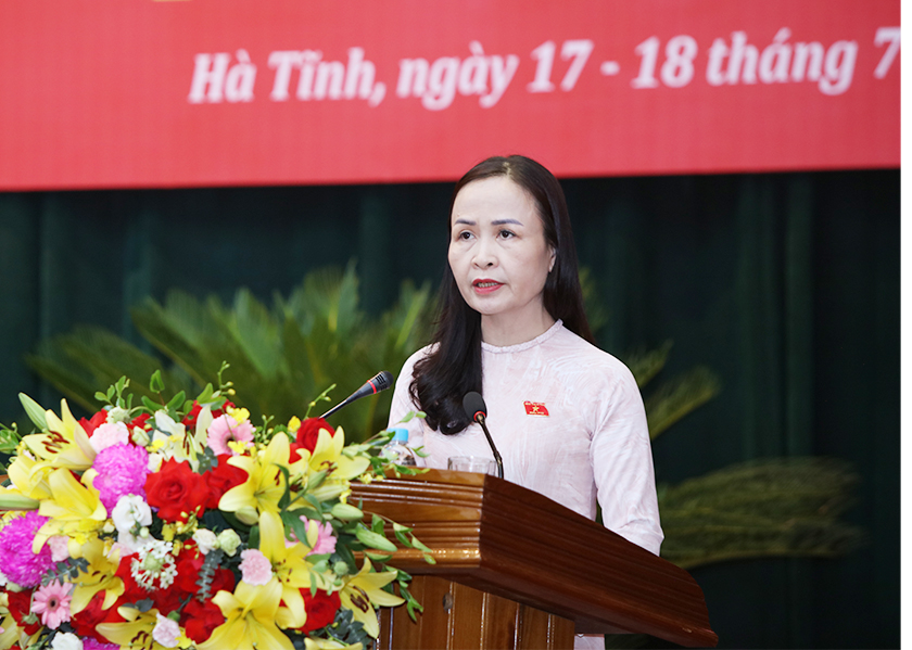 Thảo luận tại hội trường, đại biểu Nguyễn Thị Hà Tân – Phó Trưởng ban Thường trực Ban Tuyên giáo Tỉnh ủy (tổ đại biểu bầu tại huyện Can Lộc) đồng tình cao với các nội dung trình tại kỳ họp. Đại biểu cho rằng, cần tổ chức thực hiện tốt các cơ chế, chính sách đã được HĐND tỉnh ban hành để nghị quyết được thông qua đi vào cuộc sống.