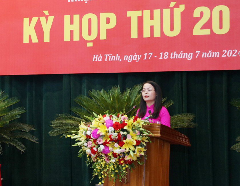 Đồng tình cao với nội dung các báo cáo, tờ trình, dự thảo nghị quyết trình tại kỳ họp, đại biểu Nguyễn Thị Lệ Hà - Chủ tịch Hội LHPN tỉnh (Tổ đại biểu bầu tại TP Hà Tĩnh) mong muốn tiếp tục nhận được sự quan tâm của HĐND tỉnh, các cấp lãnh đạo tỉnh để thành phố tiếp tục hoàn thành các mục tiêu phát triển, tập trung cho mở rộng địa giới hành chính, thực hiện chỉnh trang đô thị.