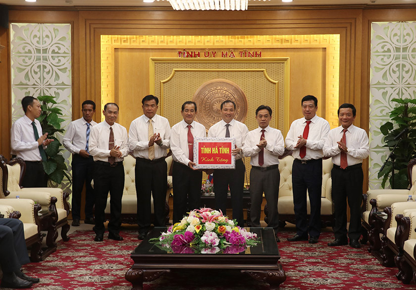 | Lãnh đạo tỉnh Hà Tĩnh tặng quà lưu niệm cho đoàn đại biểu HĐND tỉnh Bolikhămxay |