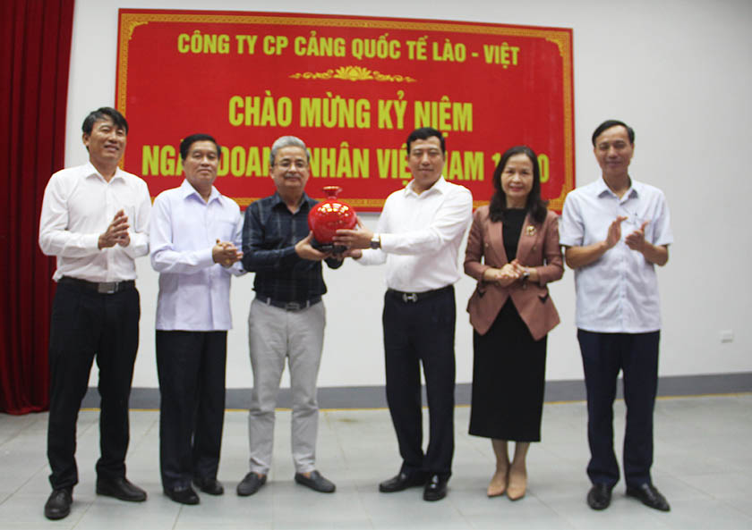 | Phó Chủ tịch Thường trực HĐND tỉnh Trần Tú Anh tặng hoa, chúc mừng Công ty CP cảng quốc tế Lào - Việt. |