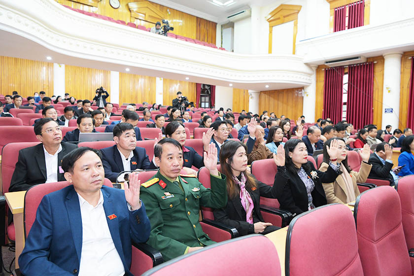 Đại biểu HĐND tỉnh biểu quyết thông qua các nghị quyết kỳ họp thứ 23