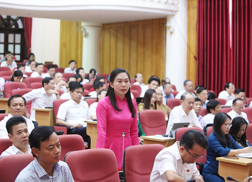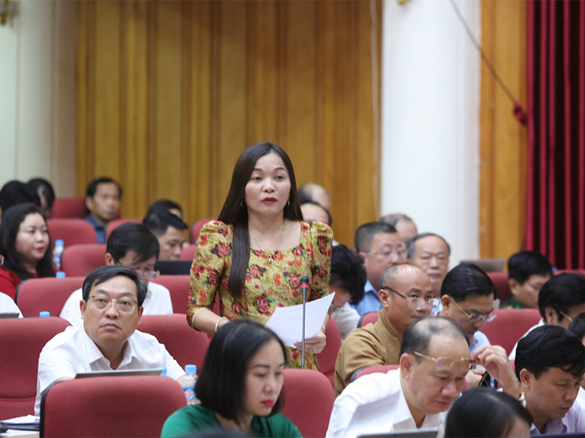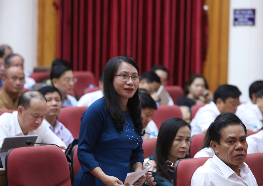 Sau phần trả lời của Giám đốc sở Nội vụ Lê Minh Đạo, đại biểu Phó Trưởng Ban Thường trực Ban Tuyên giáo Tỉnh ủy Nguyễn Thị Hà Tân nêu thực trạng thiếu giáo viên tiểu học tại huyện Vũ Quang và đề nghị lãnh đạo sở chia sẻ giải pháp trong luân chuyển, điều chuyển và đào tạo đội ngũ giáo viên điều chuyển giữa các cấp học.