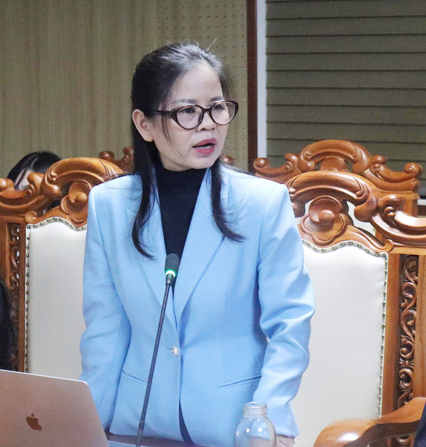 Chủ tịch UBND xã Kỳ Anh Dương Thị Vân Anh hát biểu góp ý về các cơ chế, chính sách an sinh xã hội và đề xuất bổ sung nguồn lực cho các chương trình mục tiêu trên địa bàn