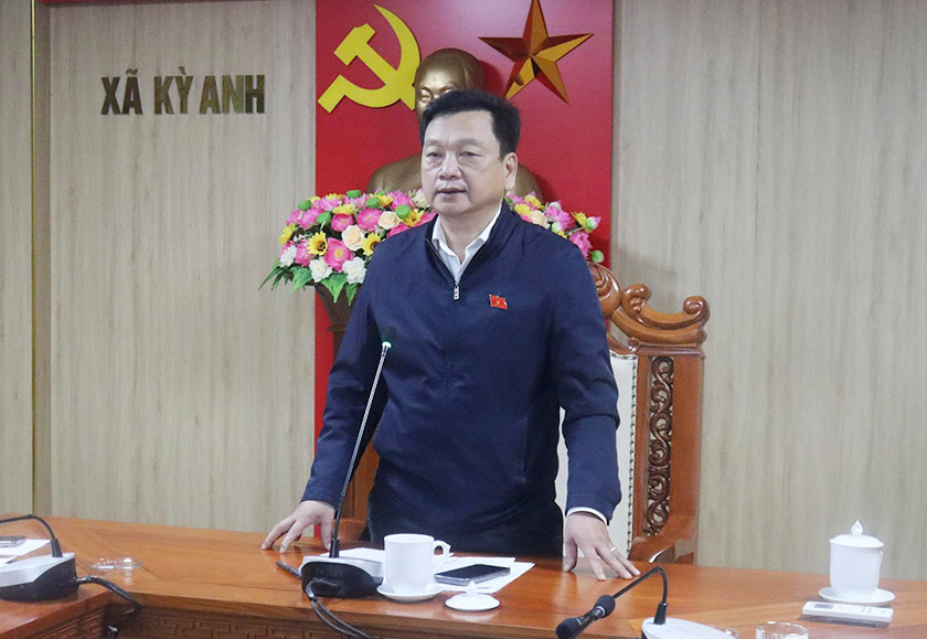 Chủ tịch UBND xã Kỳ Xuân Lê Tài Tuấn đề nghị xem xét điều chỉnh tăng tỷ lệ % cho ngân sách xã để đầu tư cơ sở hạ tầng, thúc đẩy phát triển sản xuất, nâng cao đời sống văn hóa cho Nhân dân