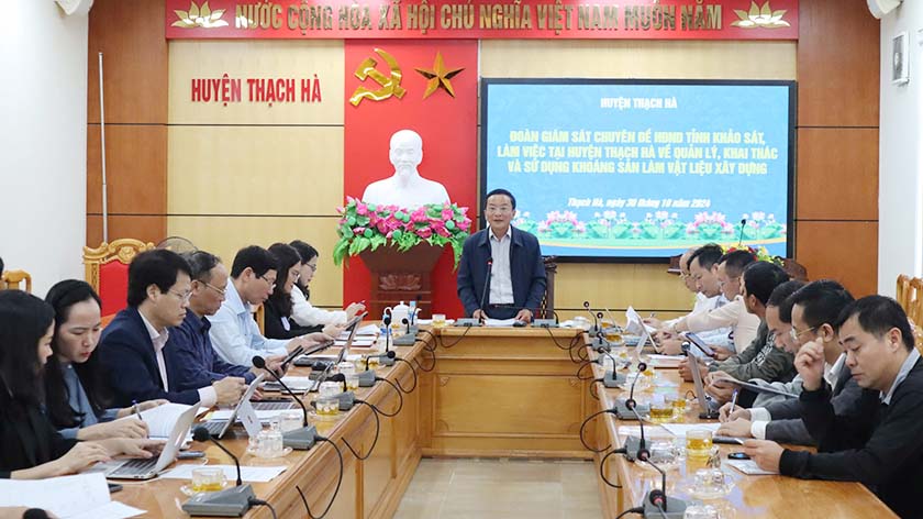 Kết luận tại buổi làm việc, Phó Chủ tịch HĐND tỉnh Trần Văn Kỳ ghi nhận những kết quả đạt được của UBND huyện Thạch Hà trong việc thực hiện chính sách, pháp luật trong quản lý, khai thác, sử dụng khoáng sản trên địa bàn huyện. Phó Chủ tịch HĐND tỉnh đề nghị UBND huyện Thạch Hà tăng cường công tác tuyên truyền, vận động người dân, doanh nghiệp chấp hành pháp luật về khoáng sản; thường xuyên theo dõi, giám sát hoạt động khai thác khoáng sản, hoàn thổ sau khi khai thác của các doanh nghiệp để kịp thời phát hiện, xử lý các hành vi vi phạm. Phát huy hơn nữa với chức năng, nhiệm vụ và quyền hạn của chính quyền địa phương theo quy định; tiếp tục phát huy vai trò của Ban giám sát cộng đồng, lắng nghe ý kiến, nguyện vọng của người dân tại các khu vực tiếp giáp, lân cận khu vực khai thác khoáng sản để kịp thời xử lý các vướng mắc phát sinh.