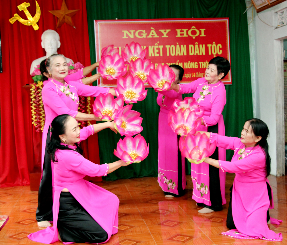 Phó Chủ tịch Thường trực HĐND tỉnh Nguyễn Thị Nữ Y và lãnh đạo huyện Thạch Hà, đông đảo bà con Nhân dân dự Ngày hội Đại đoàn kết toàn dân tộc tại Thôn La Xá, xã Tân Lâm Hương, huyện Thạch Hà