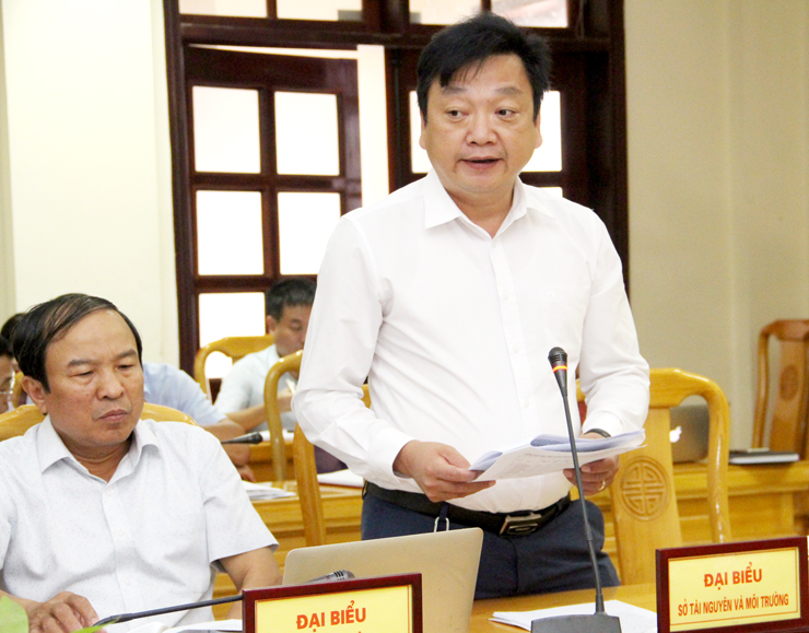 Giám đốc Sở Tài nguyên - Môi trường Hồ Huy Thành báo cáo tình hình thực hiện công tác cấp GCNQSD đất, xác định lại đất ở trước năm 1980 và giao đất sai thẩm quyền