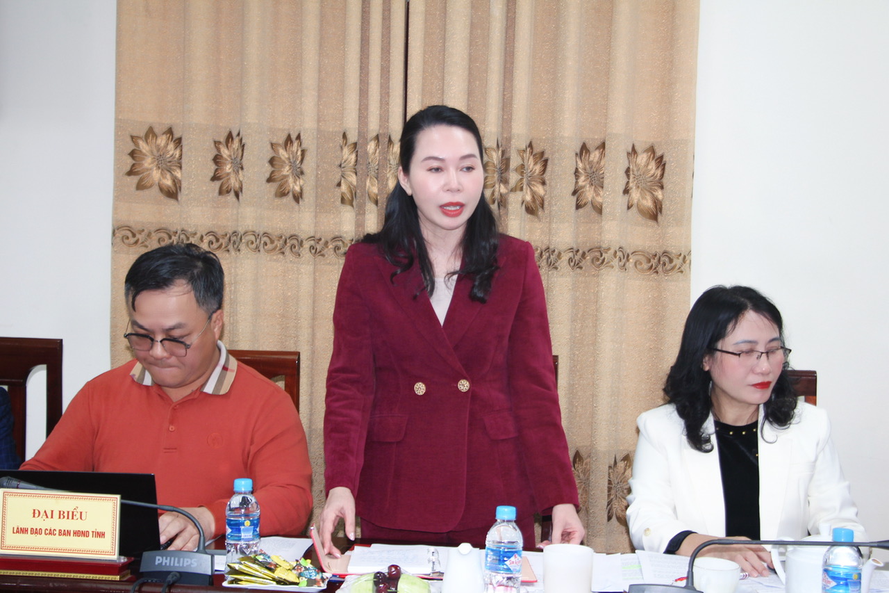 Trưởng ban Pháp chế Hội đồng nhân dân tỉnh Nguyễn Thị Nhuần: thời gian qua, Ban đã chủ động làm việc với các đơn vị thuộc khối tư pháp để xem xét các báo cáo, tờ trình, dự thảo Nghị quyết trình kỳ họp thường lệ cuối năm 2025. |