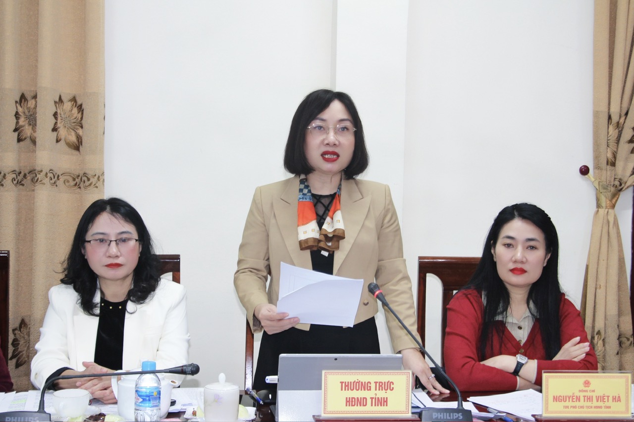 Đồng chí Nguyễn Thị Việt Hà, Ủy viên Ban Chấp hành Đảng bộ tỉnh, Phó Chủ tịch Hội đồng nhân dân tỉnh phát biểu |