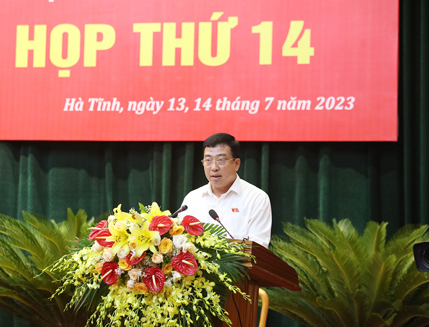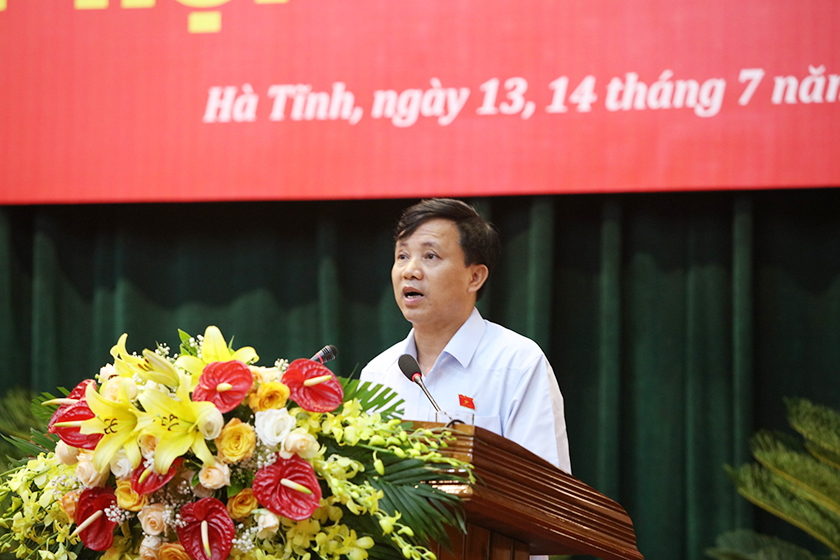 Thảo luận tại hội trường, Chủ tịch Hội Cựu chiến binh tỉnh Nguyễn Đức Tới (Tổ đại biểu bầu tại huyện Cẩm Xuyên) đã đề xuất các giải pháp liên quan đến nhiều lĩnh vực. Theo đó, với lĩnh vực nông nghiệp, cần ban hành các chủ trương phát triển nông nghiệp hữu cơ, nông nghiệp tuần hoàn, xây dựng được thương hiệu sản phẩm, quan tâm định hướng thị trường, giúp nông dân tiêu thụ sản phẩm. Góp ý giải pháp trong thu hút đầu tư, đại biểu nhấn mạnh cần xây dựng phương án, lộ trình triển khai thực hiện các dự án đã trao chứng nhận chấp thuận đầu tư tại Hội nghị công bố Quy hoạch tỉnh và Xúc tiến đầu tư vào Hà Tĩnh. Đồng thờim nhấn mạnh du lịch là 1 trong 4 ngành kinh tế trọng điểm, đại biểu Nguyễn Đức Tới đề nghị cần có giải pháp đầu tư cơ sở vật chất, tạo điều kiện thuận lợi để thu hút các nhà đầu tư, đặc biệt là các tập đoàn lớn đầu tư kinh doanh mang tính chất bền vững và hiệu quả. Cần có giải pháp đối với một số dự án đầu tư không hiệu quả như tại Khu du lịch Thiên Cầm.