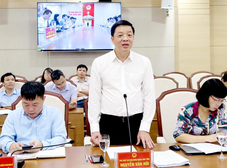 Phó Chủ tịch HĐND tỉnh Quảng Ninh Nguyễn Văn Hồi báo cáo tình hình kinh tế xã hội và tình hình phát triển các khu kinh tế, khu công nghiệp trên địa bàn