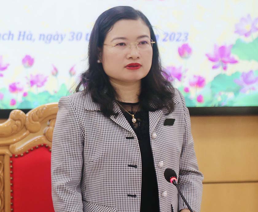 | Trưởng phòng Nội vụ huyện Thạch Hà Lê Thị Phương Thủy phát biểu |