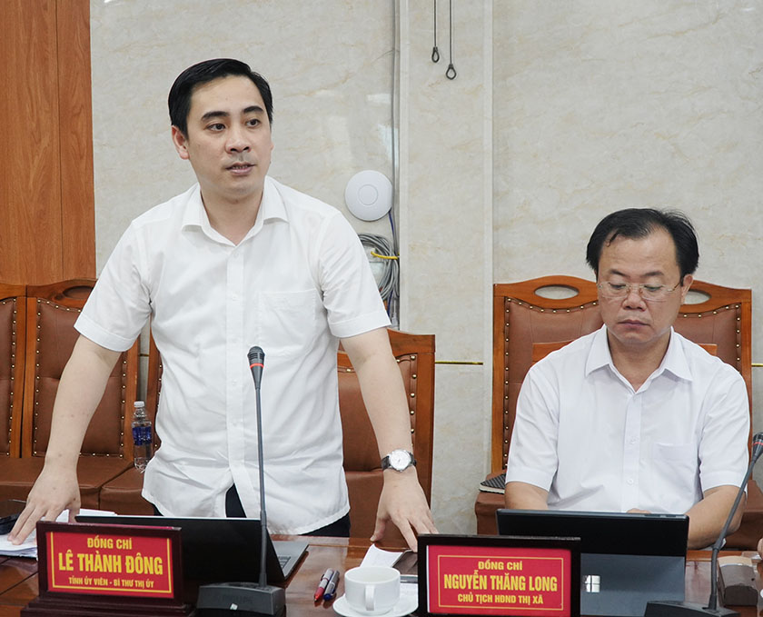 | Bí thư Thị uỷ Lê Thành Đông phát biểu tại buổi thảo luận |