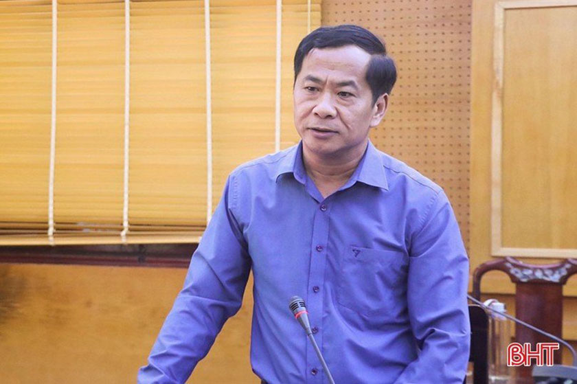 | Chủ tịch UBND huyện Can Lộc Võ Xuân Linh phát biểu (ảnh baohatinh.vn) |
