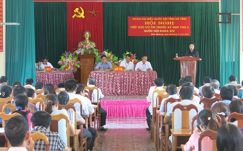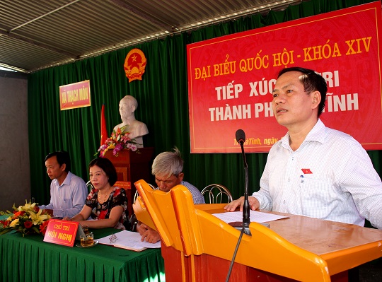 Để chuẩn bị nội dung cho kỳ họp thứ 11, Quốc hội khóa XIII, Đoàn Đại biểu quốc hội tỉnh Hà Tĩnh vừa có buổi tiếp xúc với cử tri huyện Thạch Hà. Tham dự có đồng chí Trần Tiến Dũng – Phó Trưởng Đoàn ĐBQH tỉnh, Nguyễn Văn Sơn - Ủy viên ủy ban các vấn đề xã hội Quốc hội; Phạm Thị Phương - Ủy viên ủy ban khoa học công nghệ. ; đại diện Lãnh đạo Văn phòng Đoàn ĐBQH và HĐND tỉnh, Ủy ban MTTQ tỉnh; Lãnh đạo Huyện ủy, HĐND, UBND, Ủy ban MTTQ và đông đảo cử tri huyện Thạch Hà