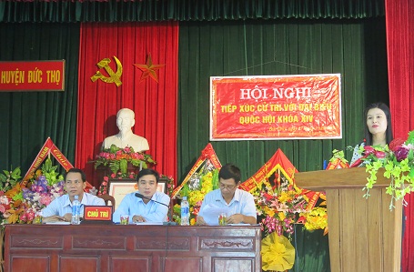 Ngày 27/9, tại Hội trường xã Đức Thủy và thị trấn huyện Đức Thọ, Đoàn ĐBQH tỉnh có các buổi tiếp xúc với cử tri trước kỳ họp thứ 2 Quốc hội khóa XIV. Ngoài các đại biểu quốc hội Võ Kim Cự, Bí thư Đảng đoàn, Chủ tịch Liên minh Hợp tác xã Việt Nam và Bùi Thị Quỳnh Thơ, giảng viên ĐH Hà Tĩnh, tham dự các buổi tiếp xúc còn có đồng chí Nguyễn Thị Gái, UVBTV, Chủ nhiệm UBKT Tỉnh ủy, đại diện lãnh đạo MTTQ, các Sở, ban, ngành cấp tỉnh; Thường trực Huyện ủy, HĐND, UBND, Ủy ban MTTQ huyện và đông đảo bà con cử tri.